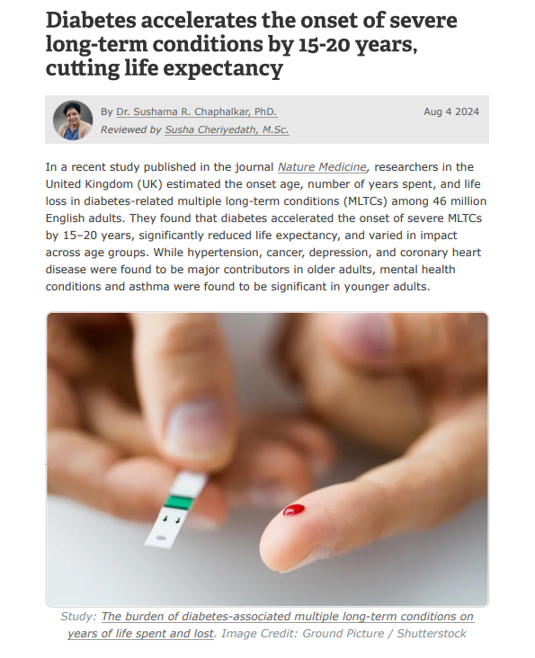 In addition to the effects on the brain, diabetes can reduce a person's life up to 20 years!